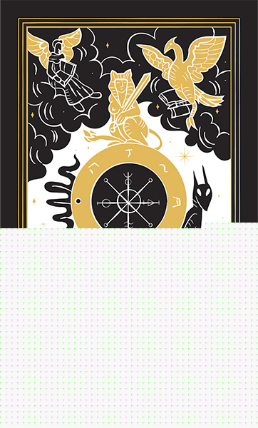 Card Ten represents the eternal cycles of fate, the turning of fortune that lifts some up and brings others down. The wheel is inscribed with the letters TORA, referencing divine law, and the Hebrew letters spelling God. The creatures in the corners represent the four fixed signs of the zodiac, suggesting that cosmic forces govern this turning.